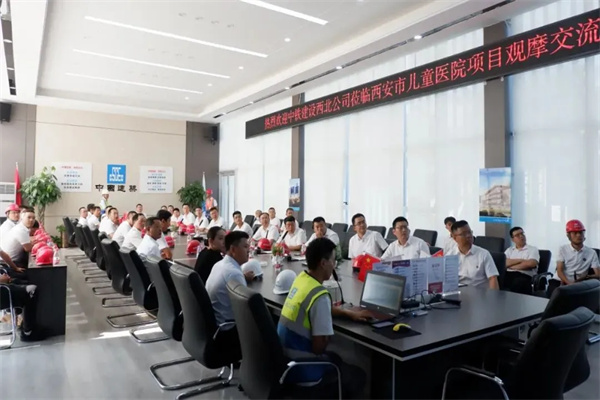 观摩人员首先在会议室认真听取了西安市儿童医院经开院区的项目概况、施工进度、安全管理、质量管控、绿色施工、智慧建造等相关信息。