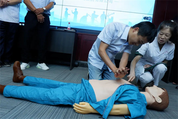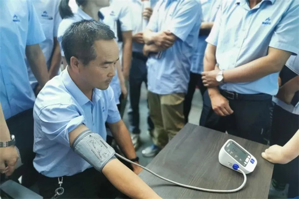 西安兵器工业五二一医院王微慎大夫结合多年临床实践经验,就夏季高温中暑易发因素、中暑的分类、中暑后的应急处理、日常生活工作因高温引起的疾病预防和意外创伤救护等知识做了深入浅出的详细讲解。随后,医院医护人员为大家培训了心肺复苏和血压测量的操作要点,并且进行了现场模拟和演练。