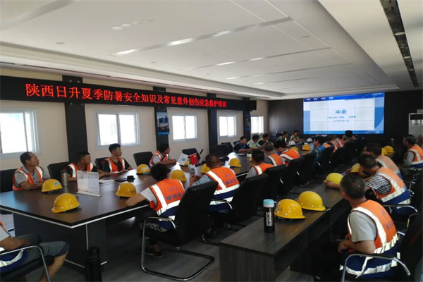 6月21日,臻诚实业集团董事长胡仁俭就夏季施工安全管理工作做出重要安排部署,公司特邀西安兵器工业五二一医院医护团队来公司开展夏季高温防暑安全和意外创伤救护知识培训。会后,公司各项目第一时间开展宣贯活动。为全面贯彻落实会议精神,确保各项会议要求落到实处取得实效,做实做细项目日常安全管理工作,切实为公司员工的身体健康和生命安全筑起一道坚固的安全屏障,公司各项目充分利用专题会、班前会等形式,迅速组织管理人员进行培训内容的学习: