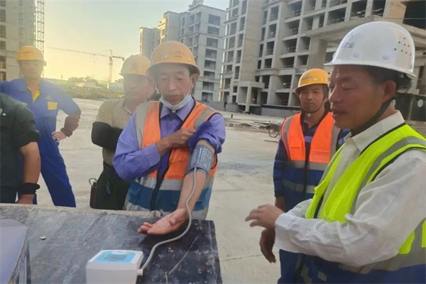 近日,西安市气象台连续发布多个高温预警信息持续的高温会使人感到不适,容易引发中暑、肠道疾病和心脑血管疾病等,为避免项目工人因高温天气引发的高血压,掌握大家的身体健康状况,臻诚实业集团各项目分别配备血压仪,针对重点人群、特殊岗位人员随时进行血压监测并建立台账,及时发现血压异常问题,安排员工立即停止工作并及时就医,为员工的健康保驾护航。