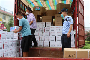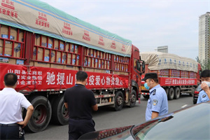 清点、分装、搬运,志愿者工作组有条不紊地将物资进行装车。8月24日11时,满载着抗疫物资和生活物资的5辆货车装车完成,疫情防控争分夺秒,时间紧迫,刻不容缓,顾不上被汗水浸透的衣衫,来不及吃中午饭,志愿者们立刻出发,将物资火速运往山阳县城。