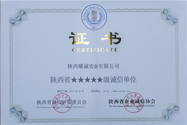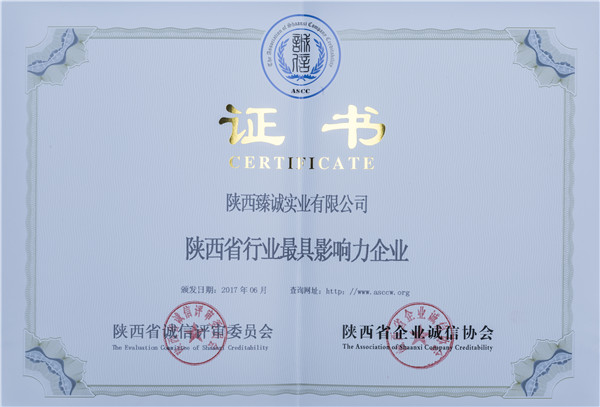 陕西省五星级诚信单位/陕西省行业最具影响力企业