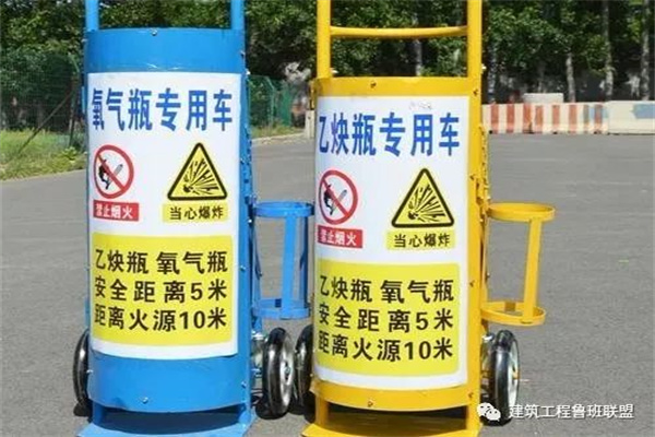 3.氧气瓶和乙炔瓶在室温下,满瓶之间安全距离5m;距点火源之间距离10m。