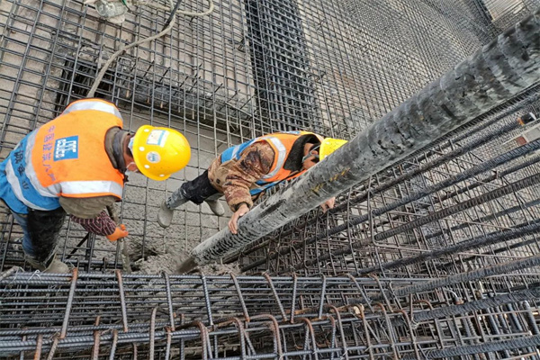 在炎热气候条件下浇筑混凝土时,应调整时间,妥善安排好施工作业面,利用环境气温较低的夜间或早晨进行混凝土施工,避开中午或下午高温时间;配备足够的人力、设备和机具,并随时控制好混凝土表面与外界的温差及混凝土内部与表面的温差。