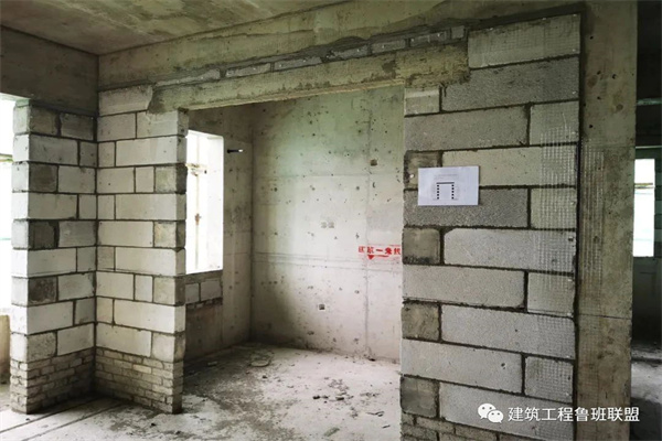 (2)搭砌长度。砌筑填充墙时应错缝搭砌,蒸压加气混凝土砌块搭砌长度不应小于砌块长度的1/3。