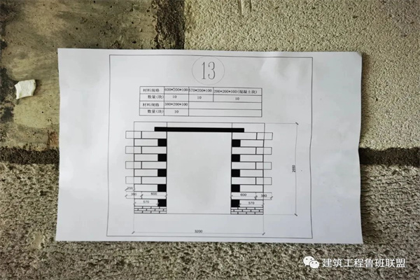 砌筑前应绘制排砖组砌图,需将反坎、拉结筋、腰梁(如有)、顶砖位置表达清楚,绘制门窗定位图,须将洞口左右、上下定位清楚,并及时向工人技术交底。